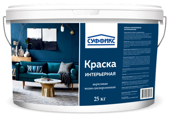 Краска интерьерная моющаяся СУФФИКС белая 0,7 л в Мариуполе | Купить по цене 122.25 руб., доставка — Принеси Подай